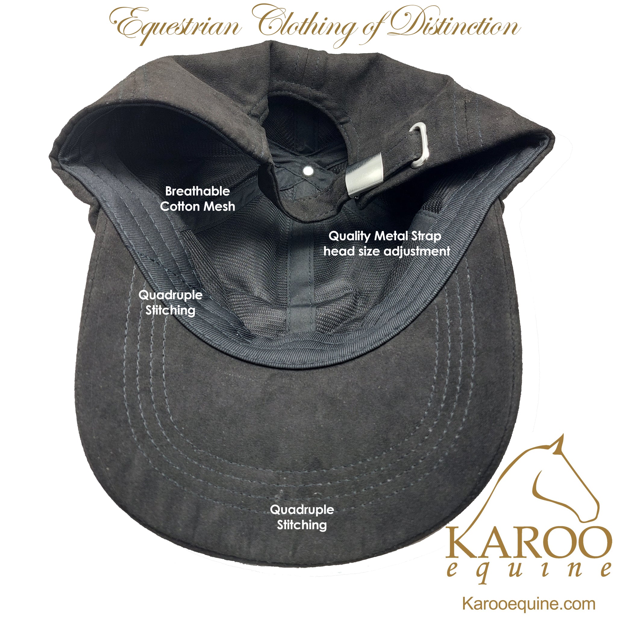 Premium Quality Unisex Cap with secondary air flow cotton mesh and adjustable metal clip strap at back to fit all size heads. Quadruple Stitching around head and cap section. Full gold colour stitched and embossed Karoo Equine logo with our new tri colour swatch band (Red, Gold & Dark Blue) under the logo. Arguably the best looking and most comfortable cap anywhere to be found.